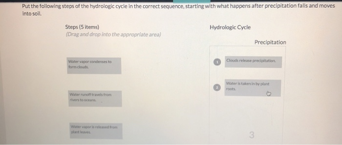 Solved Put The Following Steps Of The Hydrologic Cycle In Chegg Com